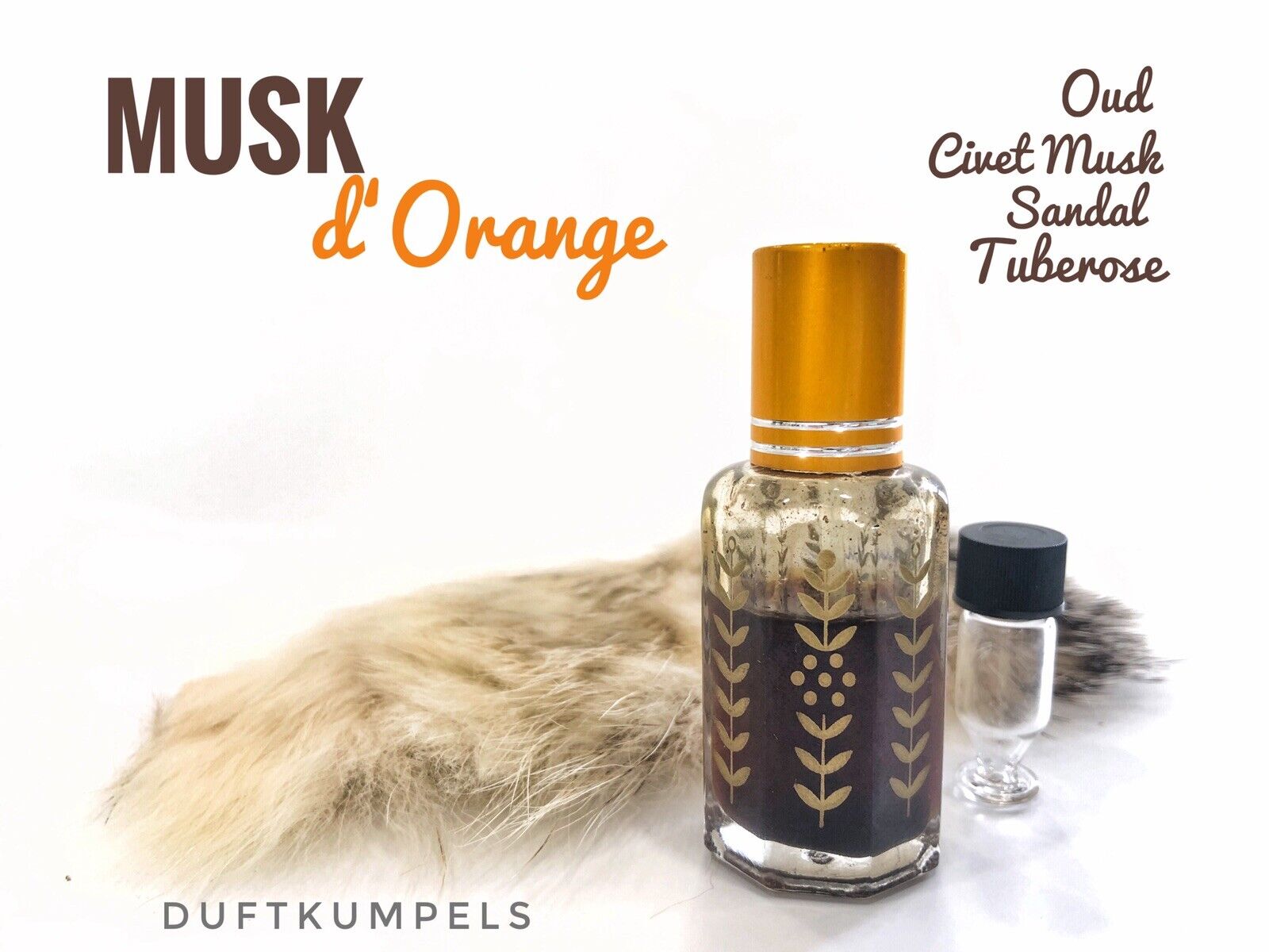 Musk d'Orange captures attention as soon as the bottle is opened! On the skin, it begins with a skillful interplay of animalic, woody accords from oud and floral extracts of patchouli and tuberose, which harmonize perfectly with each other.
