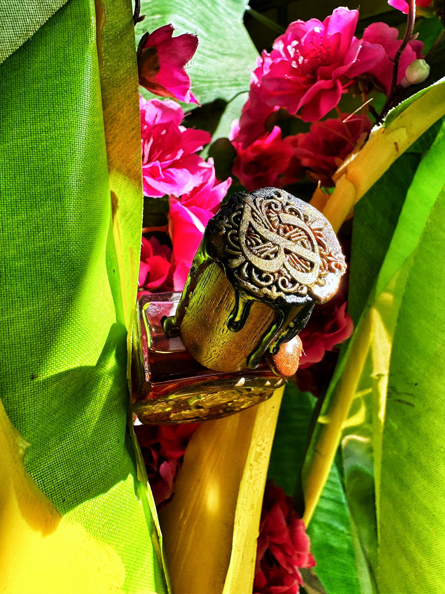 Labdanum, benzoin, and a hint of castoreum embrace the fragrance's heart with balsamic warmth, while oud from Assam vibrates like a dark shadow in the thicket—subtle yet unmistakable. The result is a complex, polyphonic melody of fruit, blossom, resin, and earth—wild yet elegant at once. A pure, handcrafted essence that defies categorization, but tells a story: of light in the darkness, of paradise in the hidden—of Flowers in the Jungle .