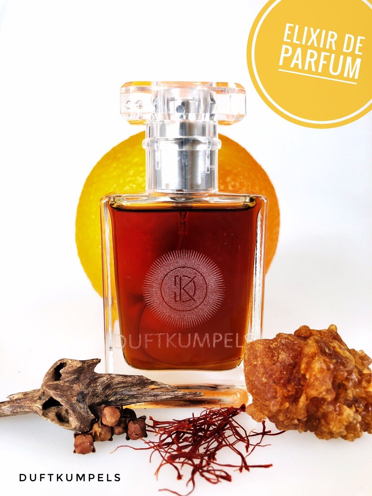 Inhaltsstoffe: Oud, Vintage Benzoe, Labdanum, Patchouli, Myrrhe, Safran, Vanille, Nelken, Castoreum, Vintage Orange, Tangerine, Gingerlilly, Tuberose, Pink Pepper, Muskat