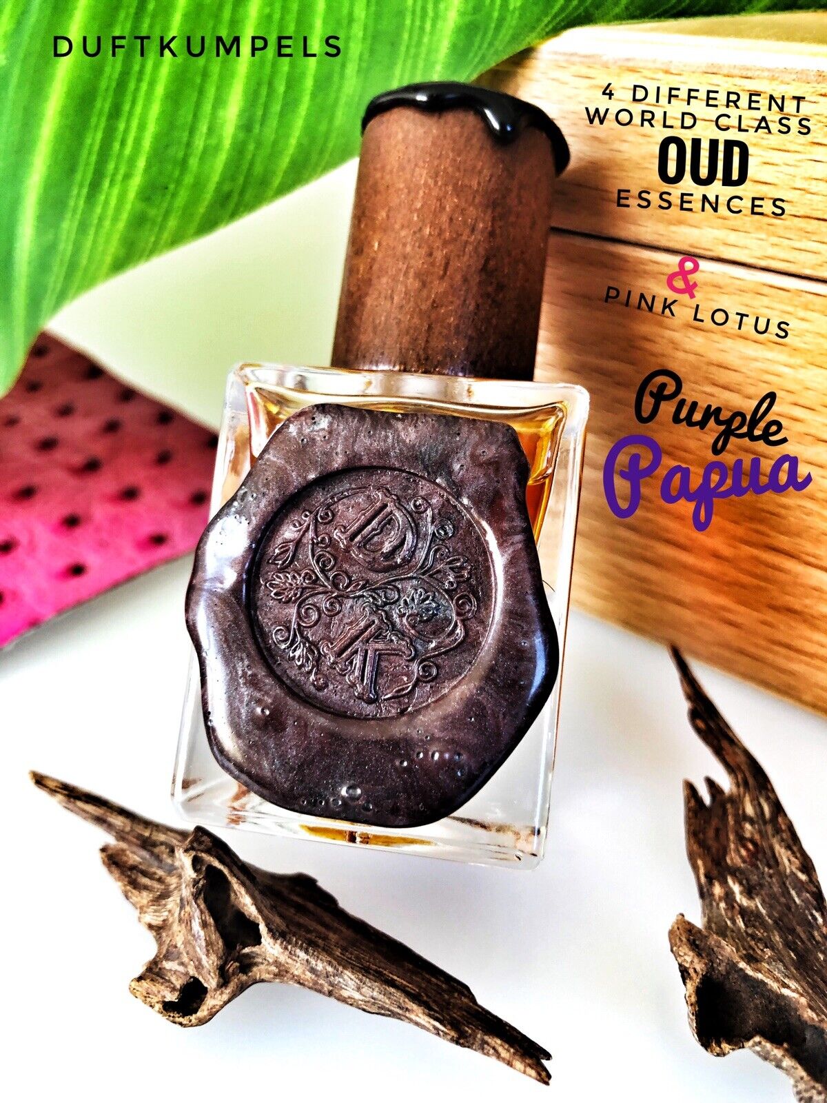 Purple Papua ist eine Oud-Kreation, die man erleben muss, um sie zu verstehen. Sie kombiniert seltene Rohstoffe und Pheromone in einer einzigartigen Komposition, die die Grenzen der traditionellen Parfümerie sprengt.
